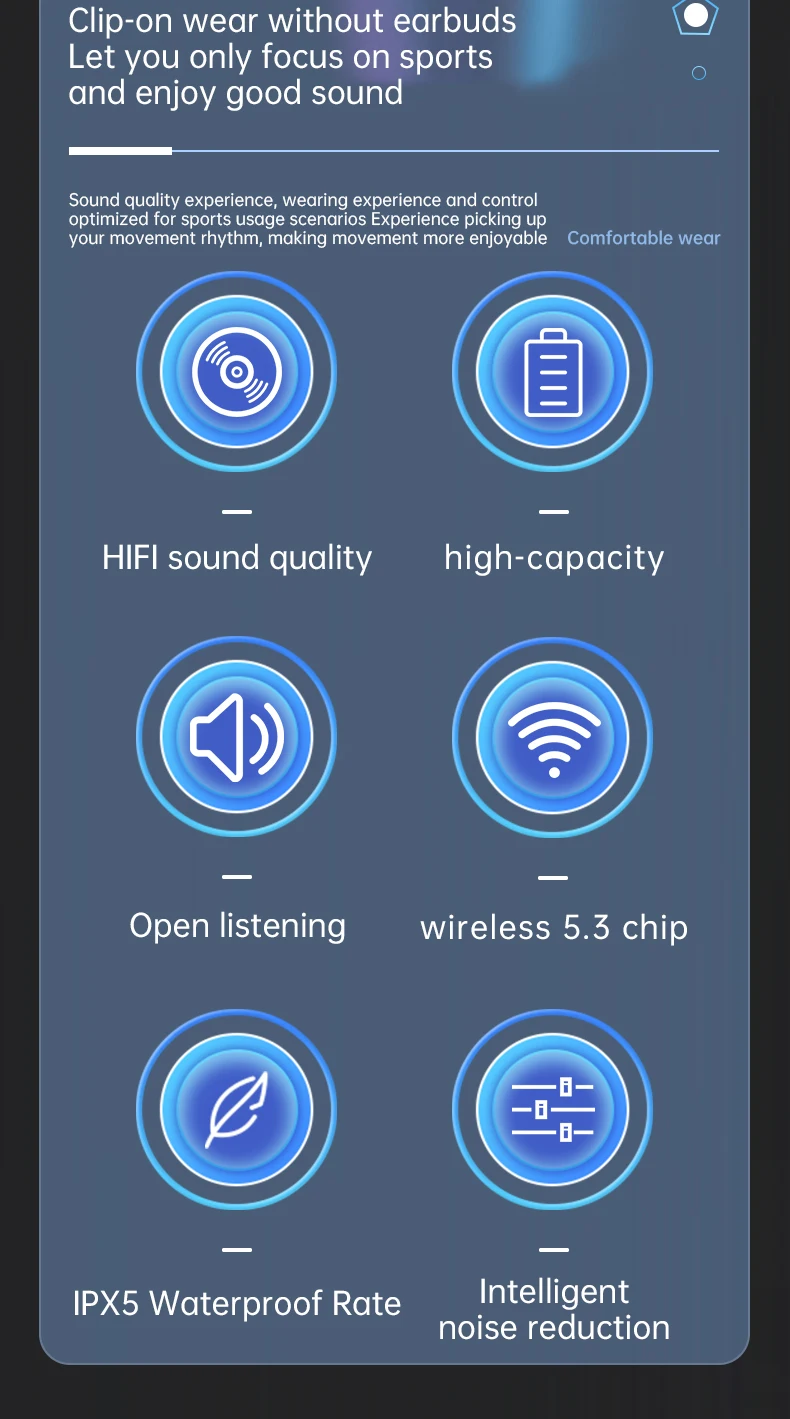 S20 wireless ear clip Bluetooth earphones are not in the ear and comfortable to wear. They are open high pitched headphones
