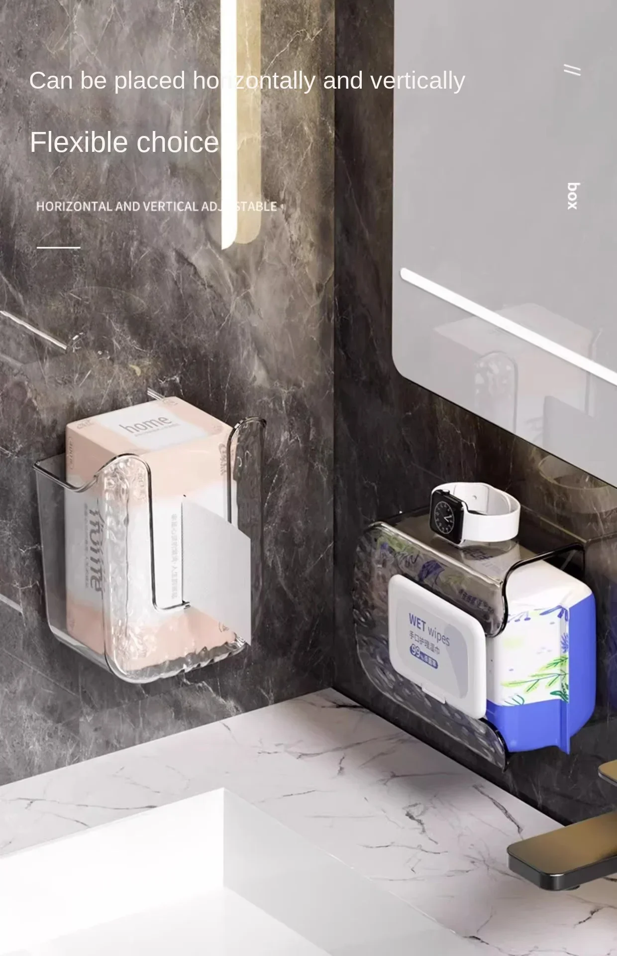 New Tissue Holder Tissue Box Light Luxury Wall-mounted Face Towel Wet Tissue Storage Box Bathroom Wall-mounted Tissue Box
