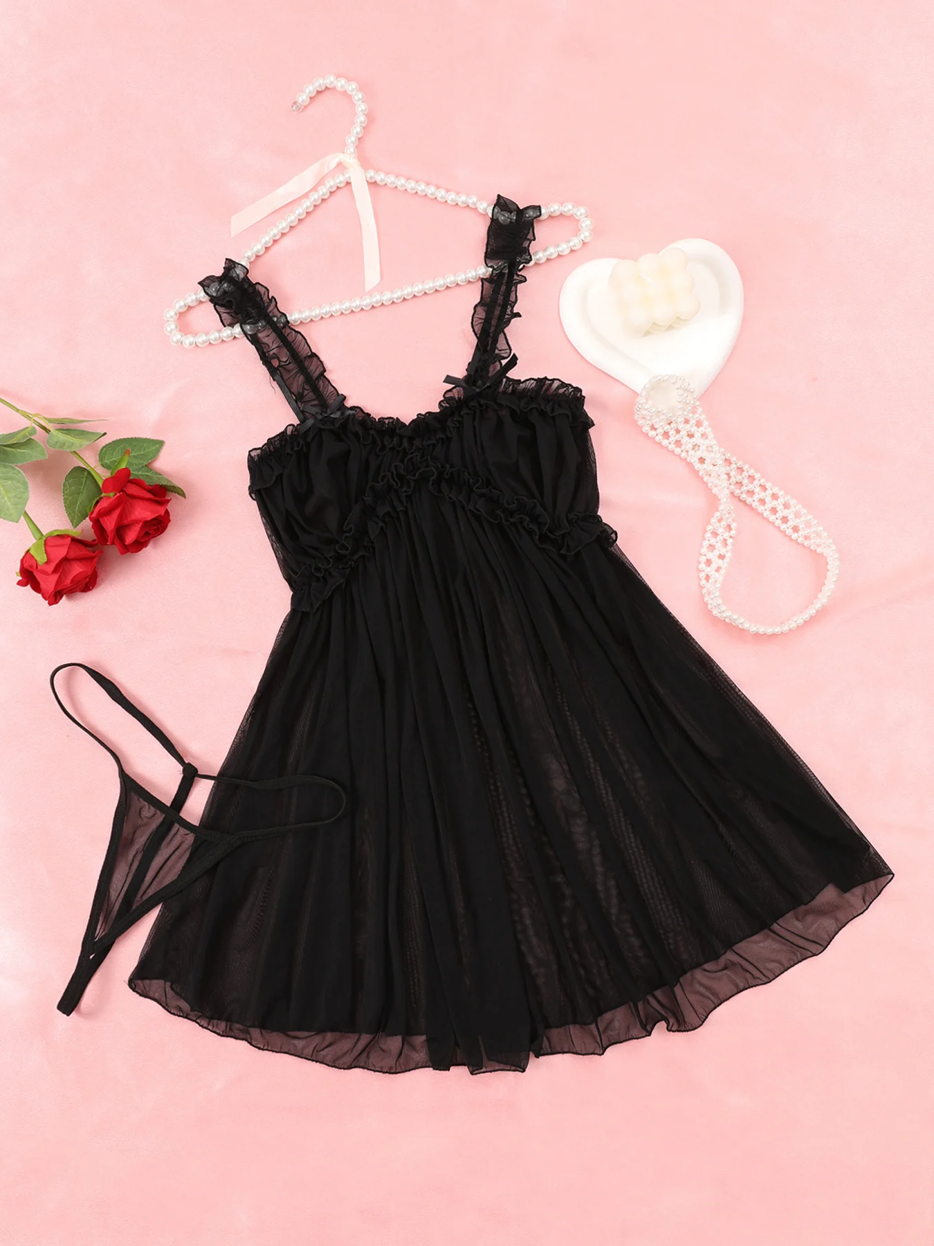 Sleeveless Transparent Sexy Nightwear For Women Babydoll Desire Lingerie Set Fashion Sexy Sleepwear Mini Ultra Short Nightgown